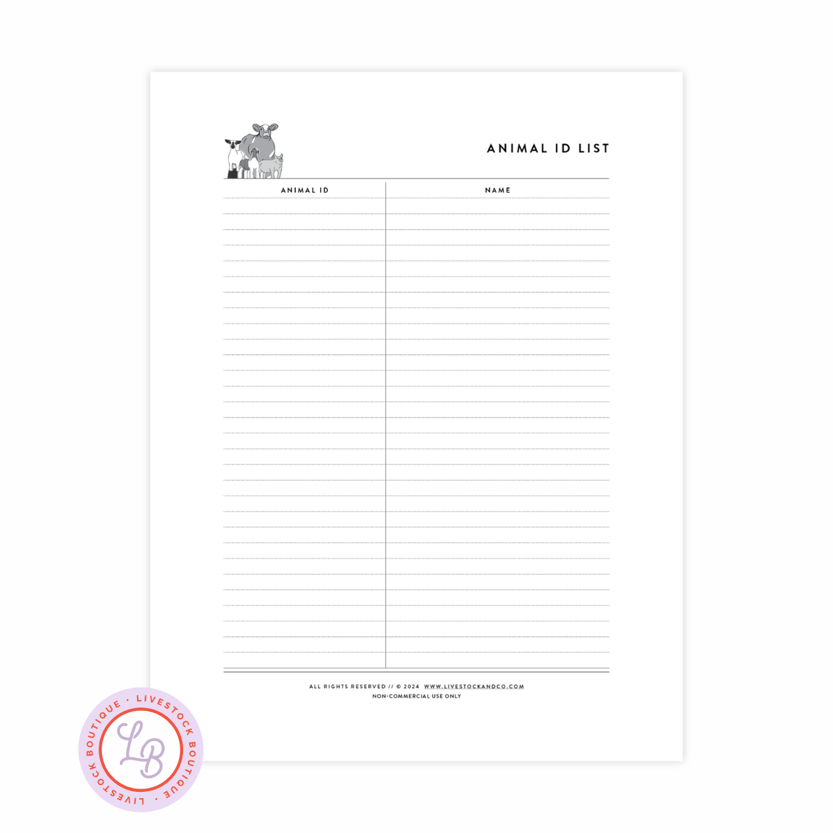 Ensure you never miss a beat with proper animal identification. Whether you're away from home needing IDs for entries or the vet, we've got you covered! Download our comprehensive master list of animal IDs and keep it at your fingertips for instant access whenever you need it.