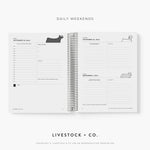 - Pages: 7” x 9” interior pages with daily and monthly planning spreads