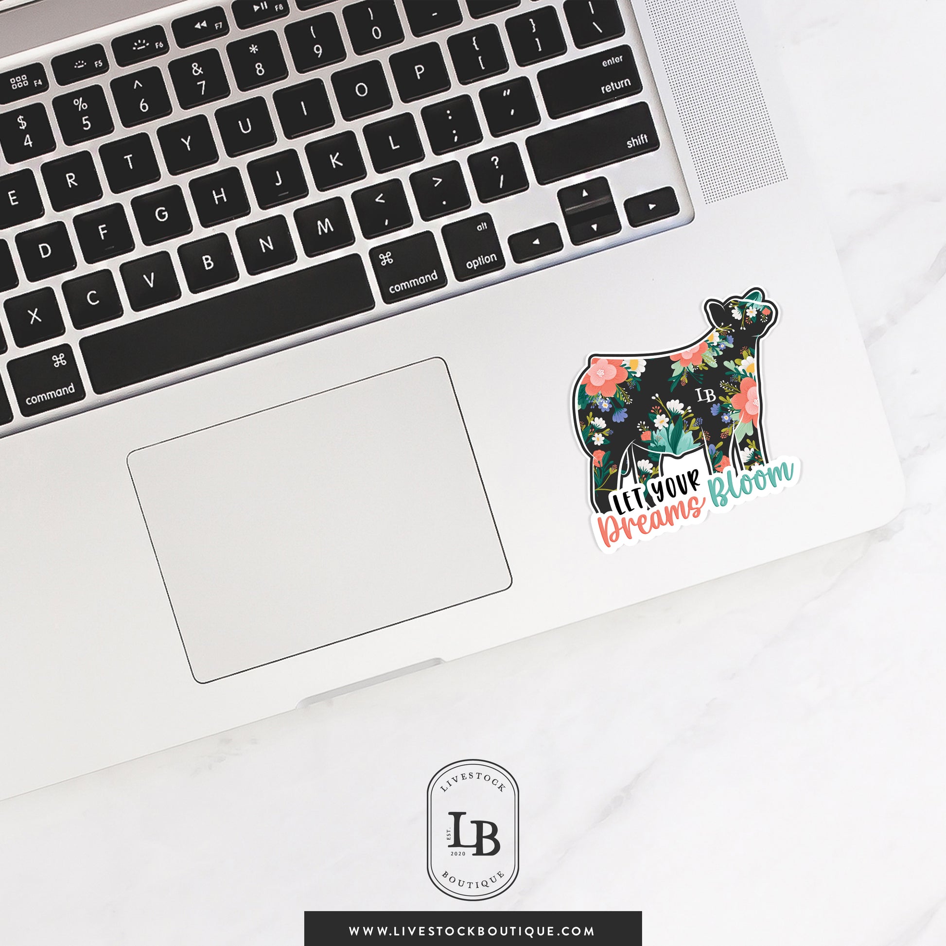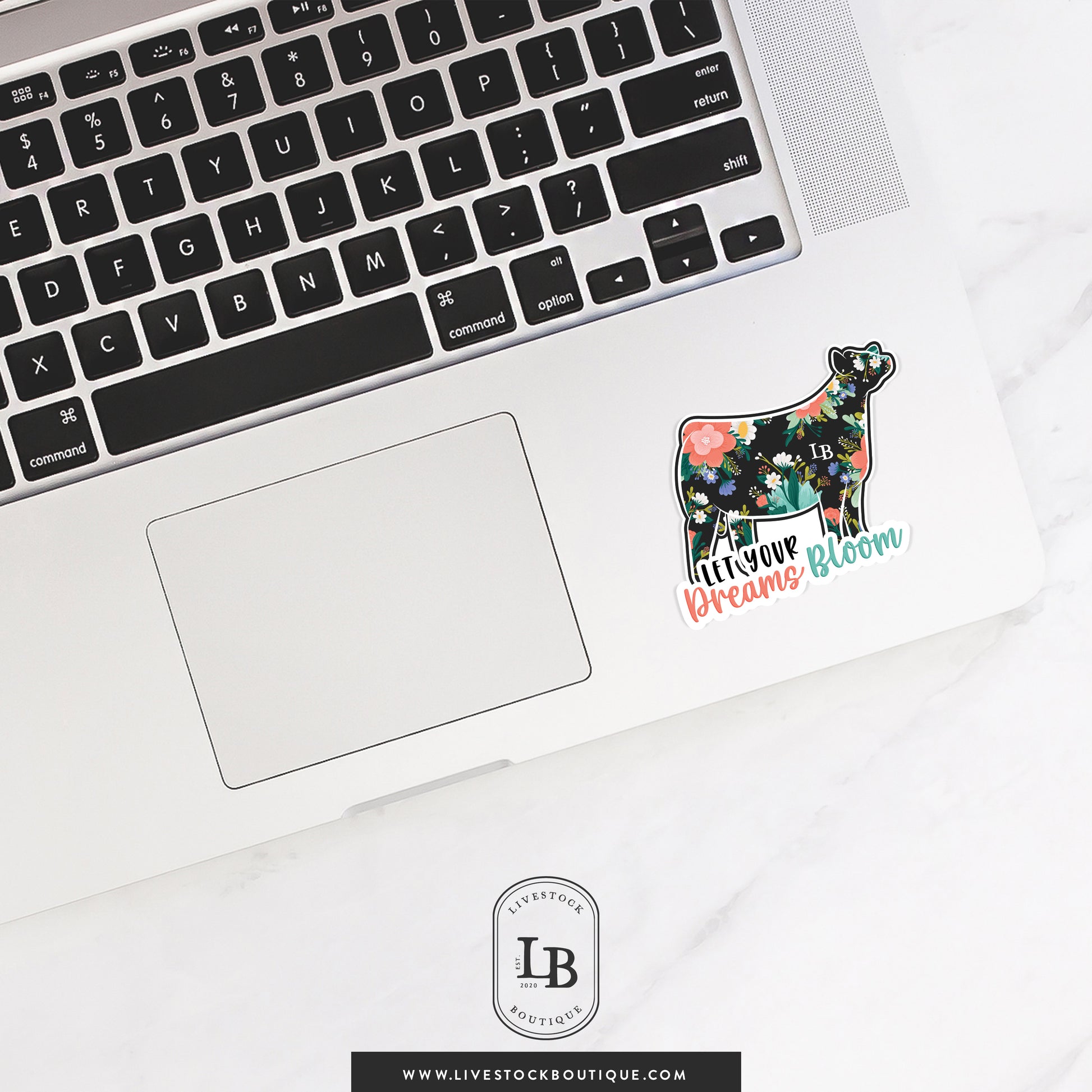 Whether it's on your water bottle, laptop, show box, or binder, this vibrant sticker brings a pop of floral-inspired joy and livestock pride wherever it goes. Crafted with a luxe matte finish and made to withstand real life, it's weatherproof, tear-resistant, and even dishwasher-safe—so it's as durable as it is beautiful.