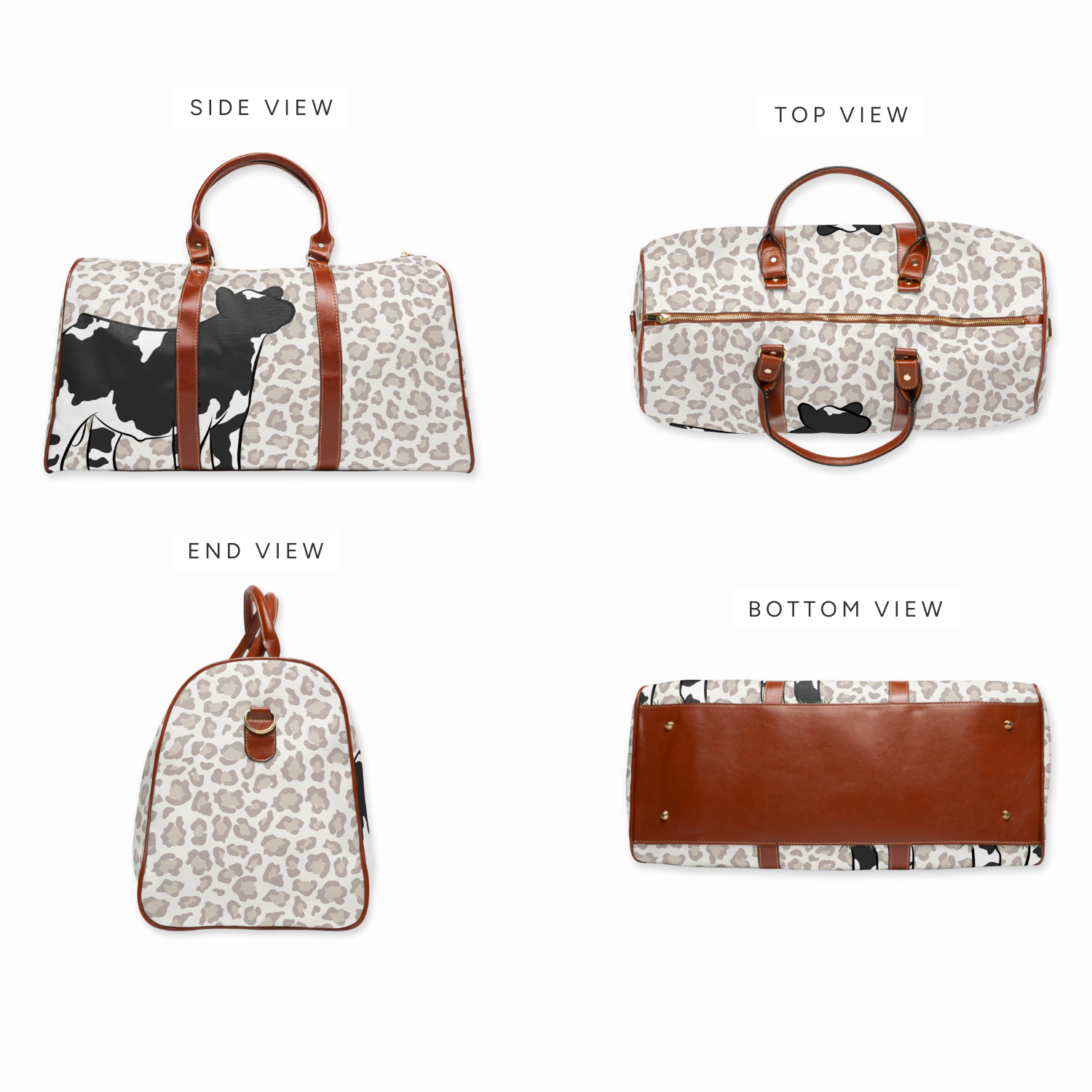 Crafted from waterproof nylon and detailed with gold zippers and faux leather handles, this bag is as functional as it is polished. Personalize it with your favorite livestock, your name, or a pattern that speaks to your style—because when you’re on the road, your gear should reflect the life you love.